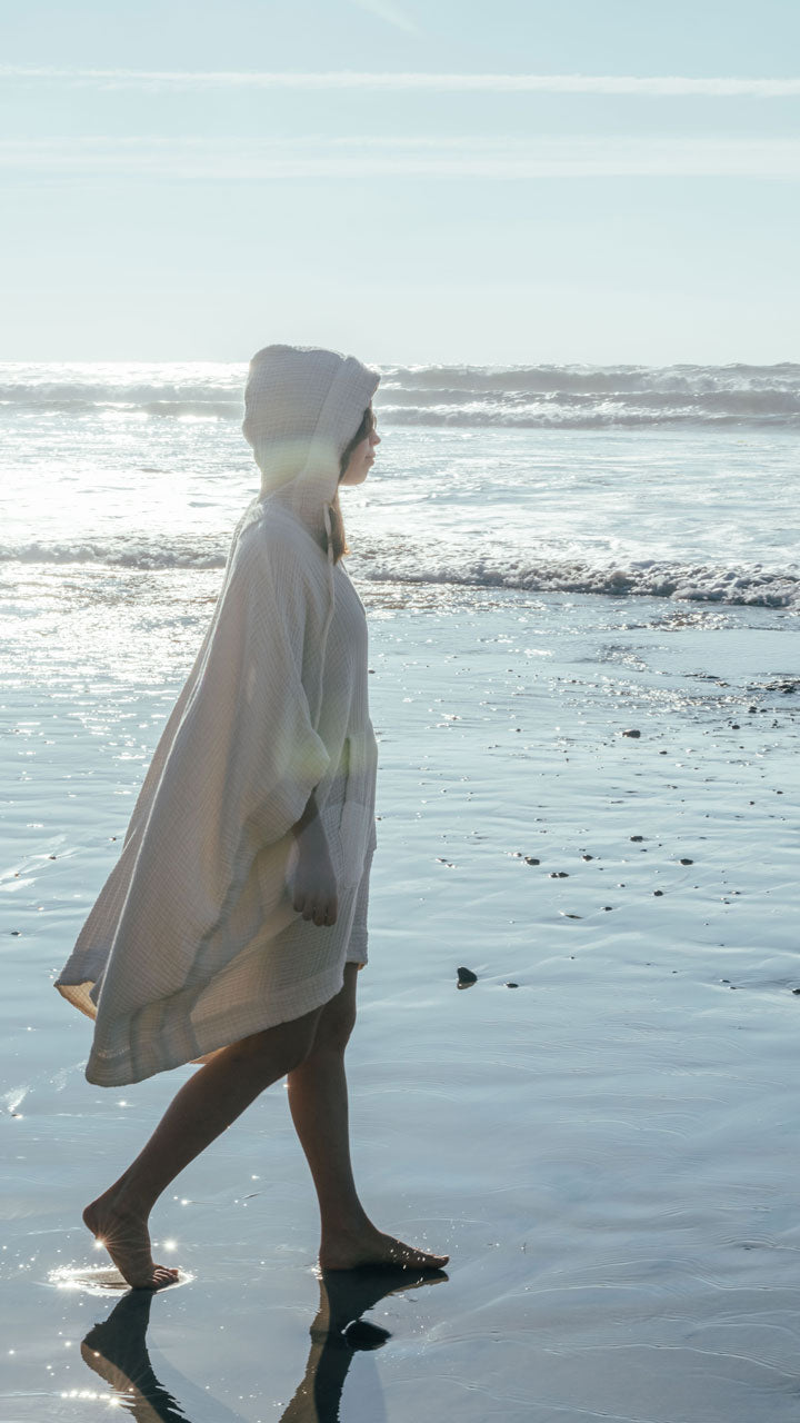 Turkish cotton balances absorbency with a quicker drying quality, and has a lovely soft hand feel. It’s substantial without any heaviness, so you can throw on your poncho and go. Who needs real clothes?